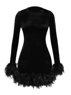 Be the first to review “Women Autumn Dress Feather Trim Long Sleeve” Cancel reply