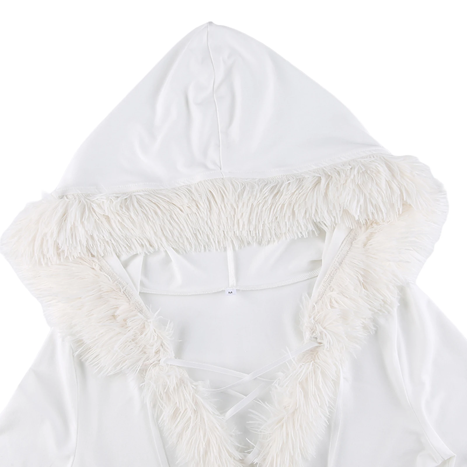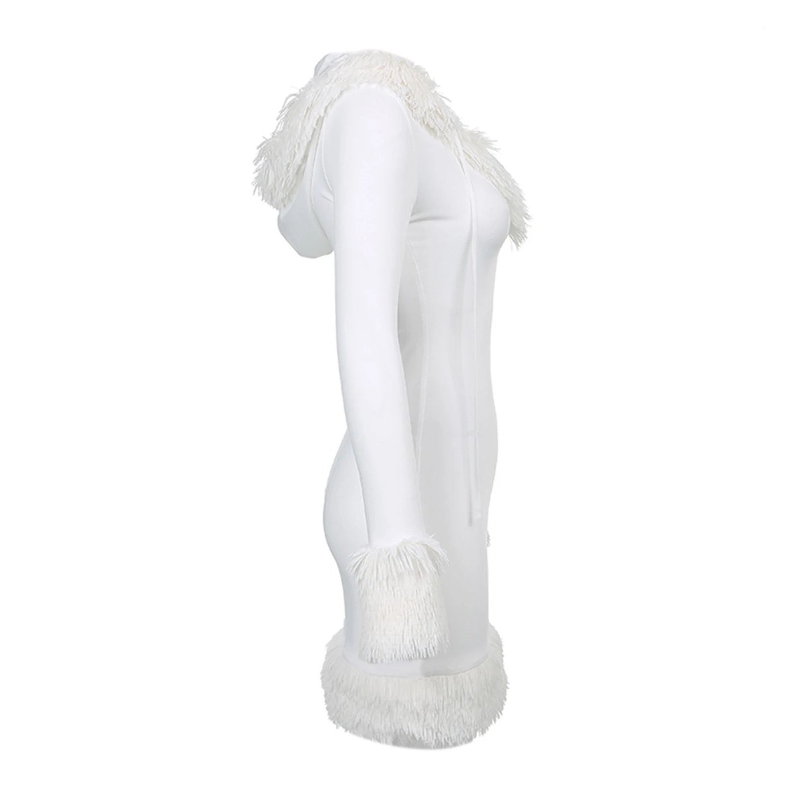 Women’s Dress, Plush Hem Splicing Frenulum V-neck Hooded Skirt