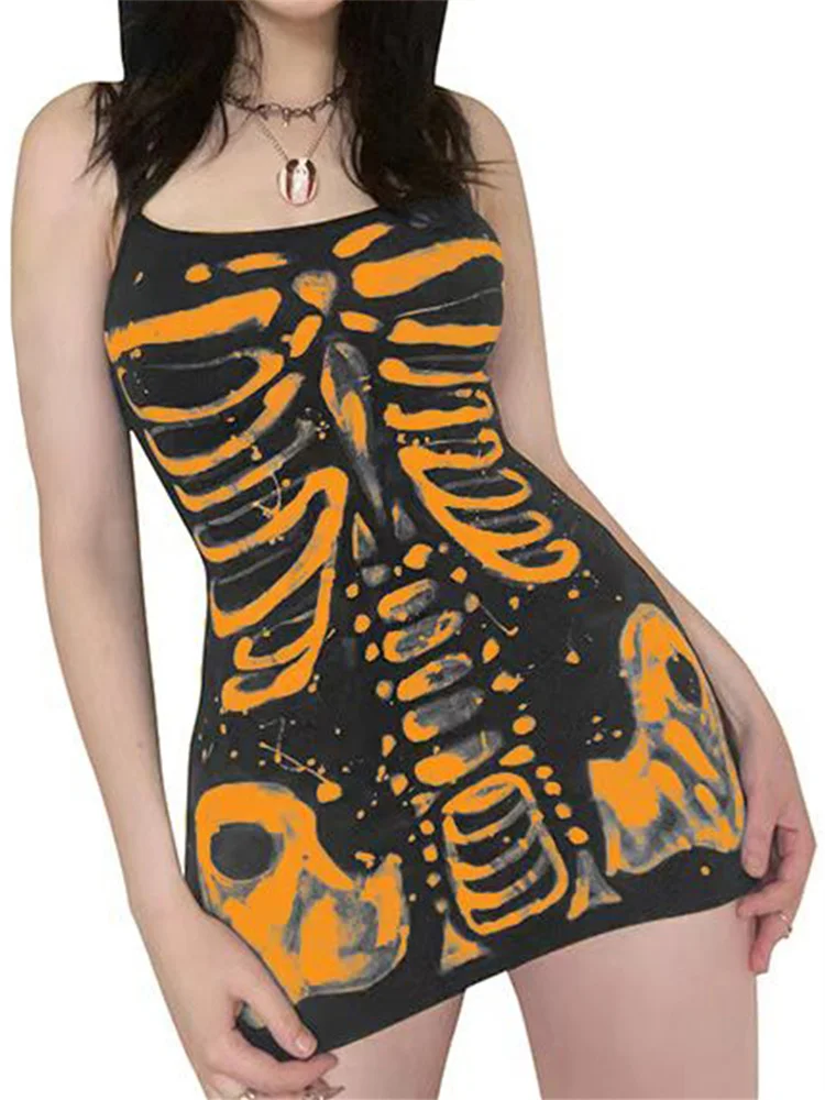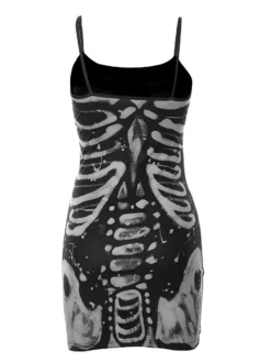 Women’s Bodycon Dress, Spaghetti Strap Sleeveless Human Bone Printed Mini Sling Dresses
